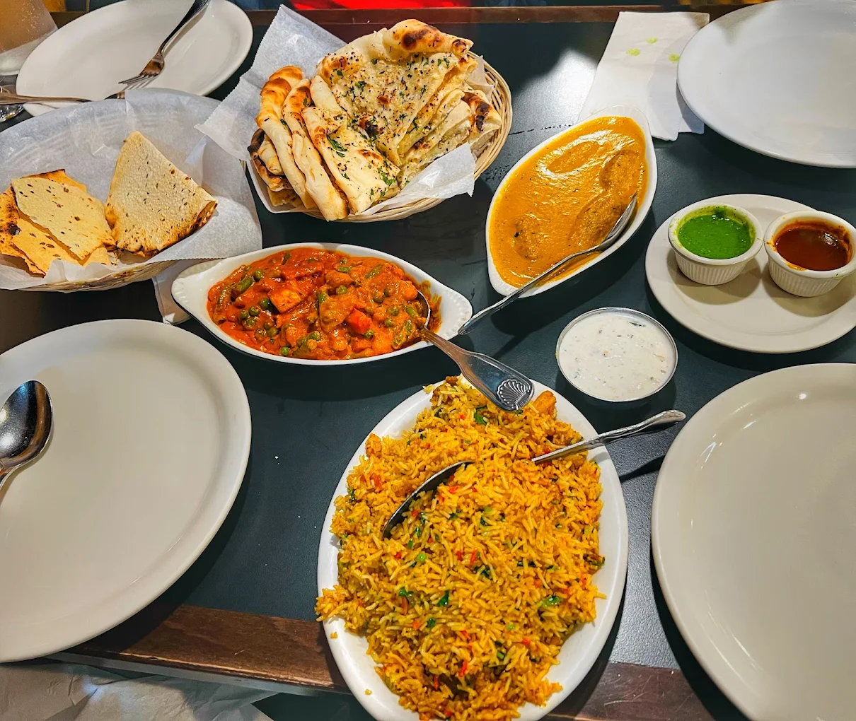 The Mount Everest India’s Cuisine menu features a variety of delectable options. For vegetarians, the Veg Thali includes Vegetable Pakora, Palak Paneer, Chana Masala, Dal (lentils), Veg Korma, accompanied by Naan, Rice, Raita, and Kheer for dessert. The Mount Everest Special Thali offers a more extensive selection with a mixed appetizer, Chicken Tikka Masala, Chicken Curry, Lamb Curry, Palak Paneer, Dal, Naan, Rice, Raita, and Gulab Jamun as dessert . Guests have praised the restaurant for its flavorful dishes and generous portions. One reviewer noted, “The BEST Nepali/Indian food I have ever had other than from my mom’s kitchen! If I could I would give this place 10/5!” Another guest highlighted the excellent service and delicious food, stating, “This place is fantastic!! The food is authentic and delicious with more than fair sizes! Plus the staff is always friendly immediately welcoming when I walk in and even remember what I order . The restaurant also offers a buffet option, providing an all-you-can-eat experience for those looking to sample a wide array of dishes. A recent highlight includes a $19.99 Indian buffet, allowing guests to indulge in various specialties . For those seeking similar culinary delights in the Los Angeles area, Everest Cuisine in Placentia, CA, offers a fusion of Indian and Nepalese dishes. Located at 2075 E Orangethorpe Ave, this restaurant provides a diverse menu with items like Vegetable Fried Rice, Chana Masala, Lamb Tikka Masala, Aloo Gobi, and Veg Manchurian . Another option is Everest Cuisine in Mission Viejo, CA, located at 25380 Marguerite Pkwy, offering dishes such as Lamb Kadai, Shrimp Saag, and Chicken Curry.
